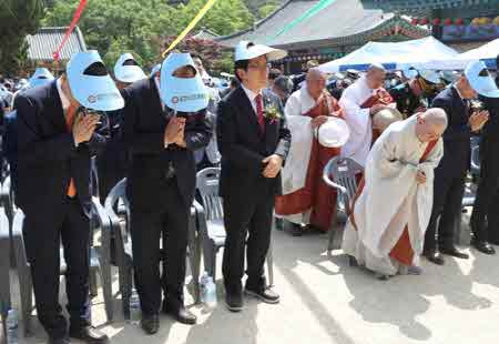 부처님오신날 법요식에 간 황교안 대표자유한국당 황교안 대표가 부처님오신날인 12일 오후 경북 영천시 은해사를 찾아 봉축 법요식에 참석하고 있다 / 연합뉴스 자료사진