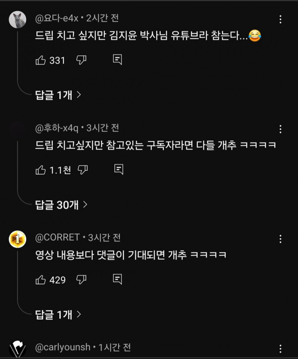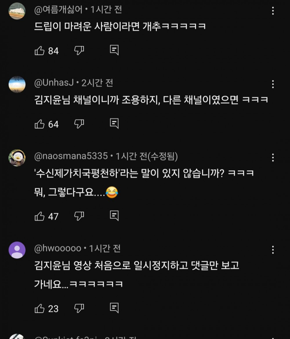 의외로 댓글들이 드립을 안 치고 채널 주인장을 존중해서 가만히 있는 상황ㅋㅋㅋㅋㅋㅋㅋㅋㅋㅋㅋㅋㅋ