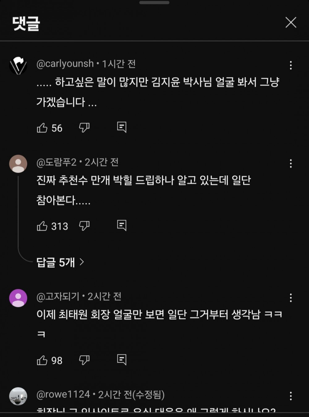 김지윤 박사 유튜브에 나온 SK 회장편 댓글창
