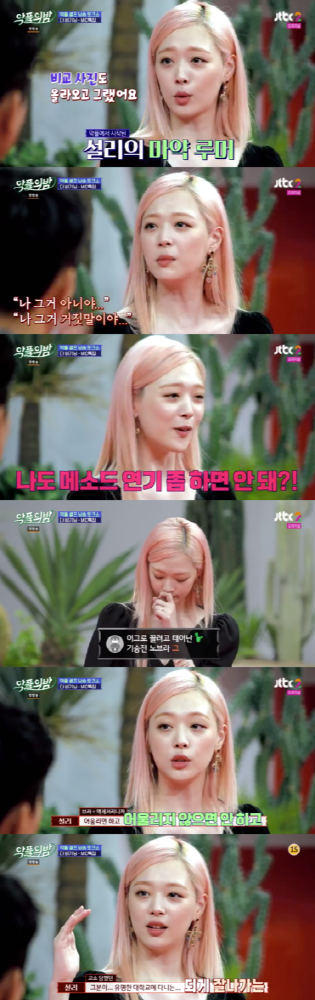 그러나 설리는 정면으로 맞섰다. 지난 6월 21일 첫 방송된 JTBC2 ‘악플의 밤’은 스타들이 자신을 따라다니는 악플에 대해 허심탄회하게 이야기하며 올바른 댓글 매너 및 문화에 대해 이야기 나누는 프로그램인데 설리가 당차게 MC로 나선 것.